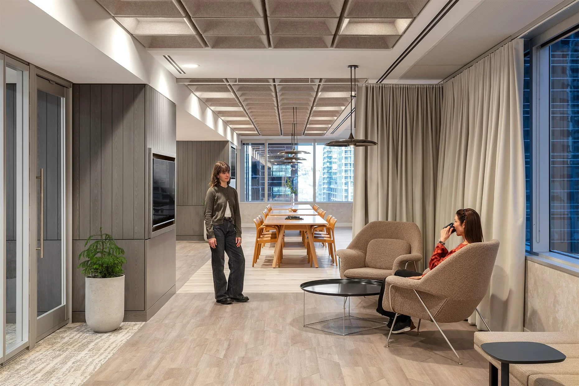 Through workplace strategy discussions and discovery sessions, the needs of the employees and leaders were uncovered. The design objectives focused on creating a space that fosters community and a culture that enhances employee experience and productivity. Translating this idea into multiple floors required focusing on accessible, inclusive and inviting spaces, a surplus of natural light and features that mimic the outdoor environment to promote mental well-being.